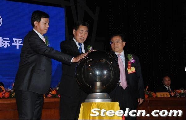 中国钢材网招投标平台启动仪式(左一为中国钢材网董事长姚红超,中间为河南省人民政府副省长刘满仓,右一为中国建设银行河南分行行长许会斌)